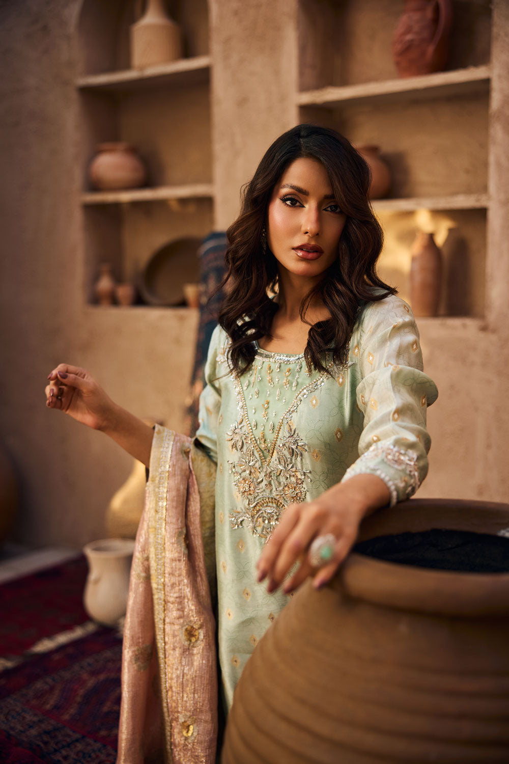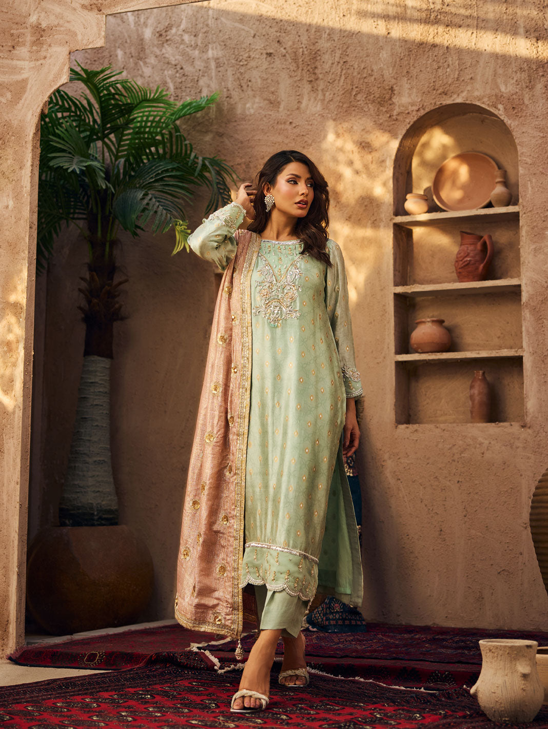 pakistani sea-green kameez dress